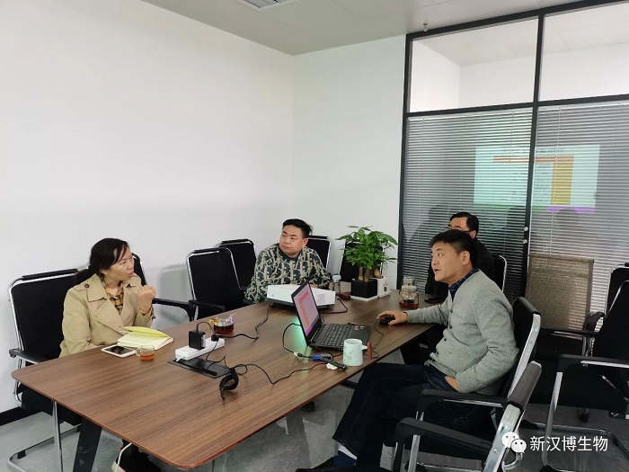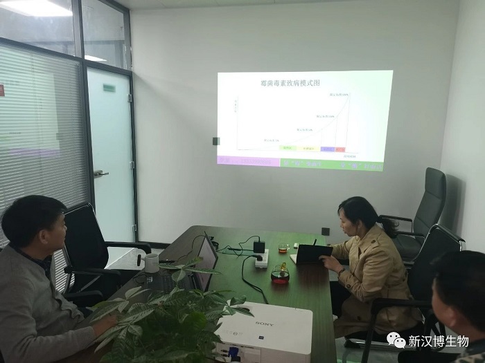 2021年2月20日下午,天康技術服務部何平老師一行到河南新漢博生物科技有限公司鄭州辦公室,針對當前飼料霉菌毒素防控進行交流